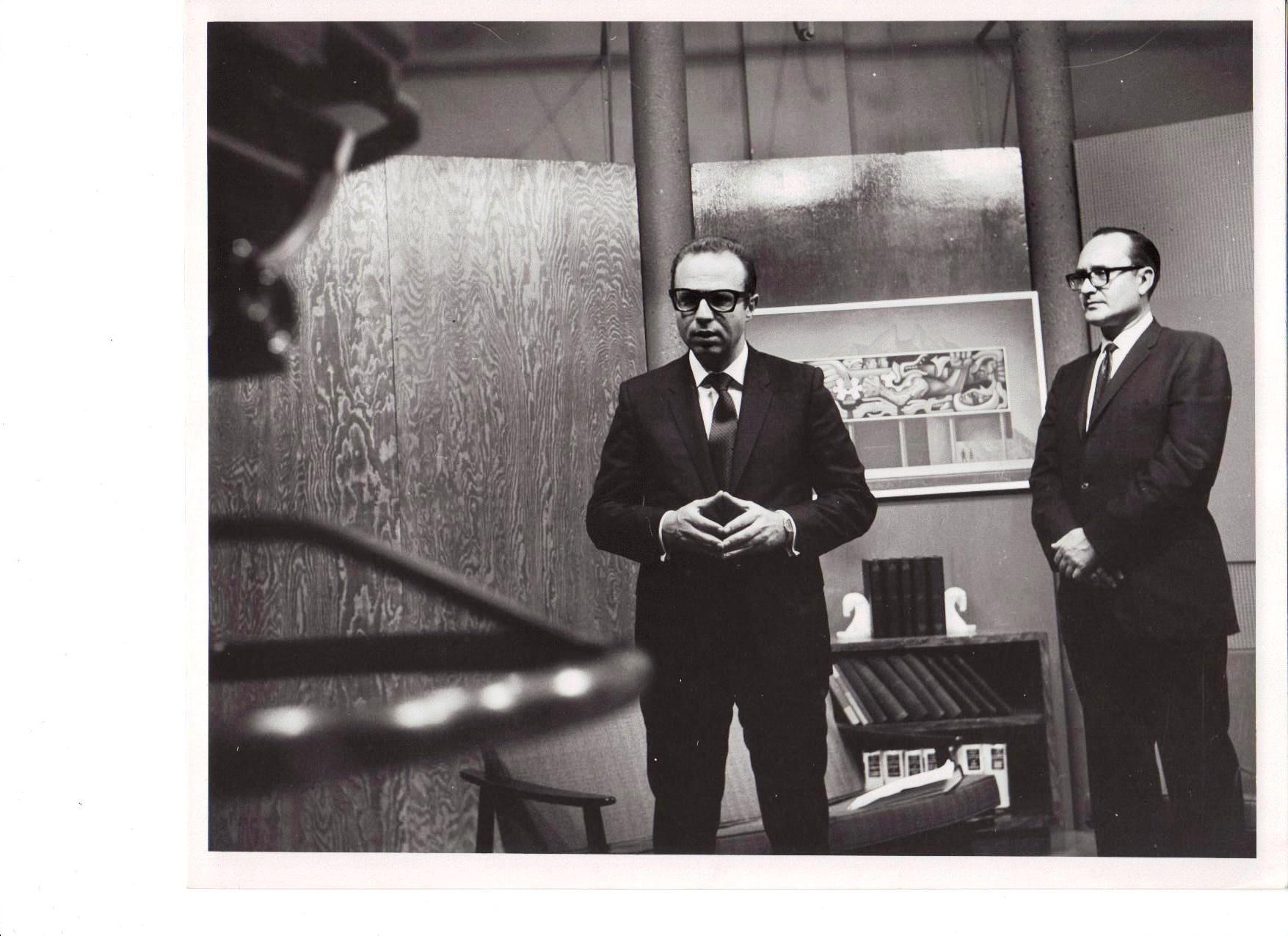 En las fotografías es posible identificar al Ing. Fernando García Roel -entonces Rector del Tecnológico de Monterrey; l Sr. Alejandro Garza Laguera, Presidente de Cervecería Cuauhtémoc y Canal 8, y el Lic. Enrique Herrera.