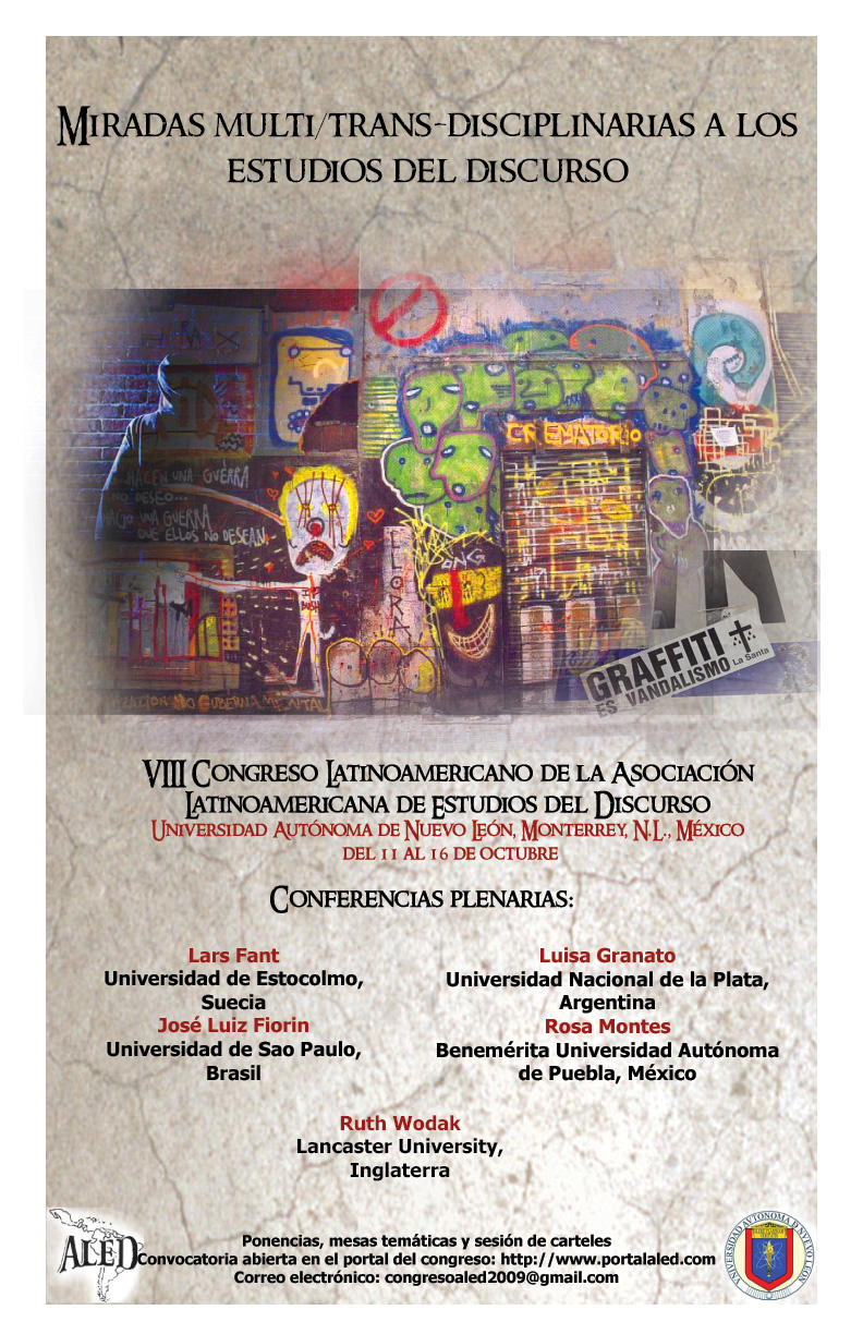 Adjuntos encontrarán: el texto de la 2nda Convocatoria para el VIII Congreso de la Asociación Latinoamericana de Estudios del Discurso, que se llevará a cabo en Monterrey, N.L., México, del 11 al 16 de octubre del presente.