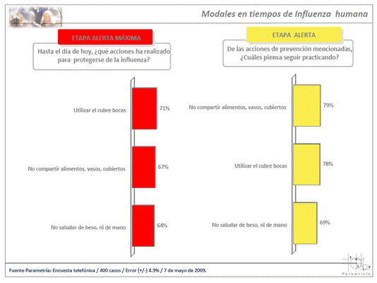 Fuente Parametría: Encuesta Nacional Telefónica de Parametría. Representatividad: Hogares a nivel nacional que cuentan con teléfono en su vivienda. Número de entrevistas: 400. Nivel de confianza estadística: 95%. Margen de error (+/-) 4.9%. Diseño de cuestionario, levantamiento y análisis: Parametría SA de CV. Fecha de levantamiento: 7 de mayo de 2009.
