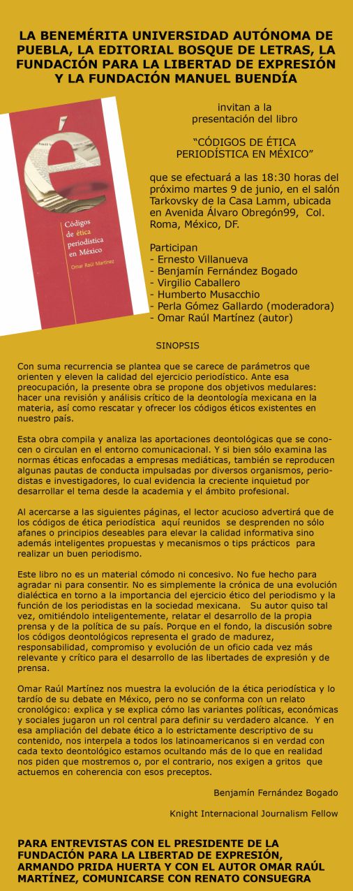 3035 México, presentación del libro Códigos de ética periodística en México, Omar Raúl Martínez
