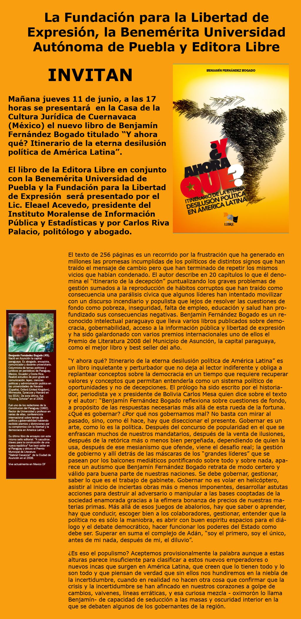 3098 México, Benjamín Fernández Bogado, presentación del libro ¿Y ahora qué? Itinerario de la eterna desilusión política en América Latina