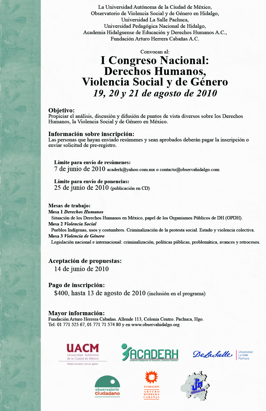 I CONGRESO NACIONAL DERECHOS HUMANOS, VIOLENCIA SOCIAL Y DE GÉNERO