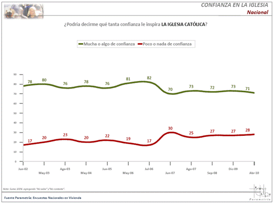 La imagen de la Iglesia continúa siendo de las más sólidas y estables en el país. En los últimos años ha tenido un nivel de confianza de alrededor de 70 por ciento.