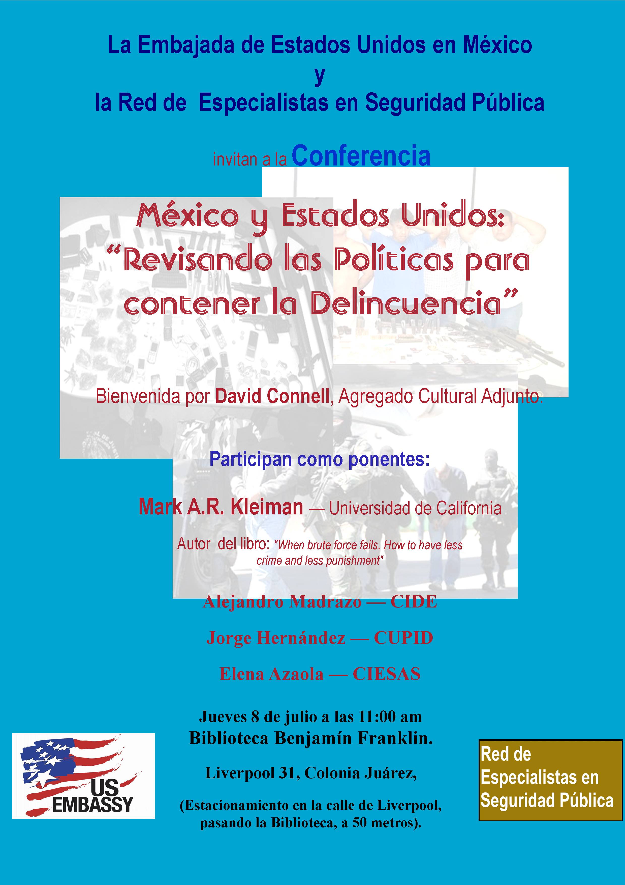 5063 México, Embajada de Estados Unidos, Red de Especialistas en Seguridad Pública, Conferencia, México y Estados Unidos: revisando las políticas para contener la delincuencia
