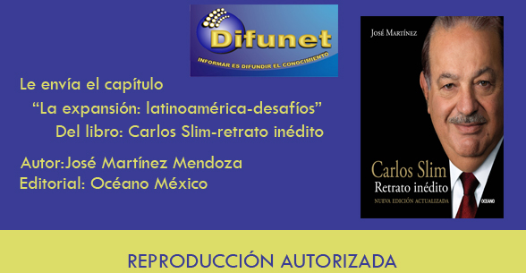 El siguiente texto es un fragmento del capítulo “La Expansión” del libroCarlos Slim, Retrato Inédito, escrito por el periodista José Martínez, autor de numerosas obras biográficas y de investigación. Con autorización del autor y de la editorial Océano de México, Difunet ofrece en exclusiva a sus receptores este adelanto, como cortesía para sus lectores en todo el país. El libro se encuentra ya en las librerías.
