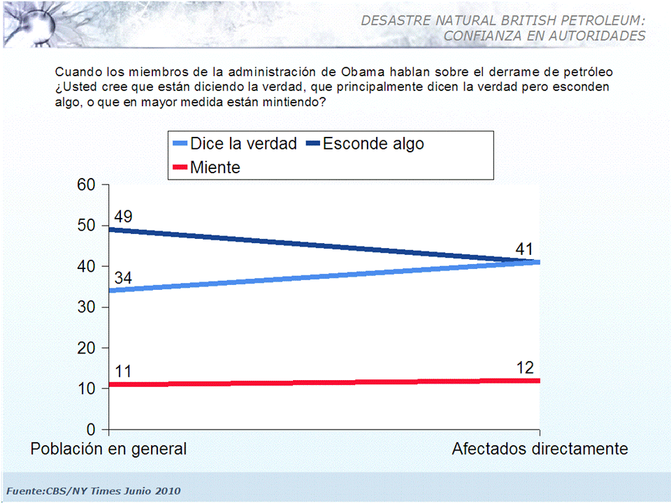 En cuanto a la credibilidad de las autoridades, cinco de cada diez estadounidenses cree que el gobierno de Obama no dice toda la verdad sobre la tragedia y 34% cree que sí.