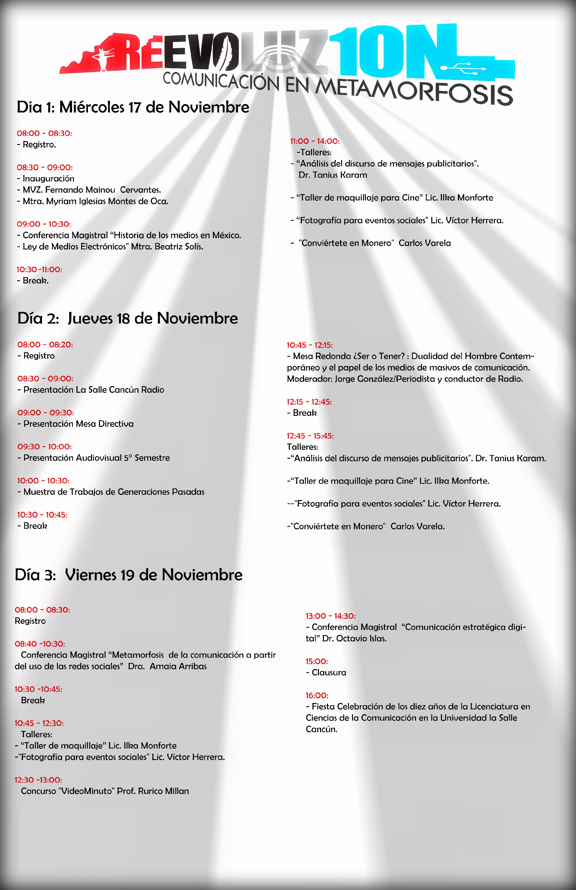 5986 México, Universidad La Salle Cancún, Revoluz10N Comunicación en metamorfosis, programa, Beatriz Solís, Amaia Arribas, Tanius Karam, Octavio Islas