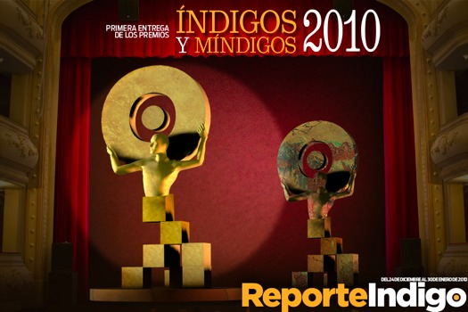 Bienvenidos a la primera ceremonia de la entrega de los Indigos y los Míndigos 2010, las estatuillas con las que se reconoce lo mejor y lo no tan mejor de la política, las finanzas, la cultura, el deporte y los espectáculos en México. Favor de tomar sus asientos… Tercera llamada, tercera… Comenzamos. (ACCESO LIBRE)