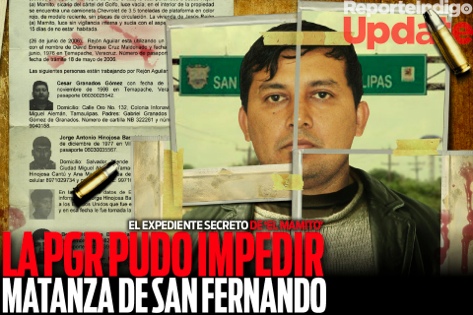 7393 México, Reporte Indigo, LA PGR PUDO IMPEDIR MATANZA DE SAN FERNANDO Octavio Islas. Fundador de la revista científica Razón y Palabra.9 agosto 20119 agosto 2011Análisis, opinión pública, Periodismo y ciberperiodismo Navegación de entradas AnteriorSiguiente LA PGR PUDO IMPEDIR MATANZA DE SAN FERNADO Un expediente del cabecilla de Los Zetas Jesús Enrique Rejón Aguilar alias “El Mamito”, indica que desde 2006 la PGR lo tenía ubicado, y también que sabía de la existencia del campo de entrenamiento de ese grupo criminal en San Fernando, Tamaulipas, donde fueron localizados al menos 193 cadáveres en fosas clandestinas y otros 72 indocumentados fueron asesinados. Pero no fue hasta cinco años después y al menos 265 homicidios, que detienen a “El Mamito” y que La Marina entra a San Fernando. Comparte esto: Haz clic para compartir en Facebook (Se abre en una ventana nueva) Facebook Haz clic para compartir en X (Se abre en una ventana nueva) X Haz clic para compartir en Pinterest (Se abre en una ventana nueva) Pinterest Haz clic para enviar un enlace por correo electrónico a un amigo (Se abre en una ventana nueva) Correo electrónico Haz clic para compartir en LinkedIn (Se abre en una ventana nueva) LinkedIn Haz clic para compartir en Reddit (Se abre en una ventana nueva) Reddit Haz clic para compartir en Tumblr (Se abre en una ventana nueva) Tumblr Más Haz clic para imprimir (Se abre en una ventana nueva) Imprimir Me gusta Cargando... Relacionado