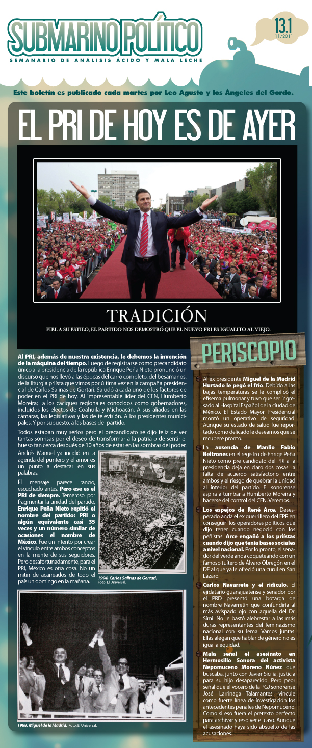 Carlos Navarrete y el ridículo. El ejidatario guanajuatense y senador por el PRD presentó una botarga de nombre Navarretín que confundiría al más avispado ojo con aquella del Dr. Simi. No le bastó alebrestar a las más duras representantes del feminazismo nacional con su lema: Vamos juntas. Ellas alegan que hablar de género no es igual a equidad.