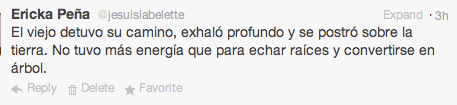 “Después de hacerle el amor, encendió un cigarrillo y lo fumó, pensativo: ‘Como en las películas francesas…’ luego se levantó del lecho y empezó a vestirse lentamente, como en las películas francesas. La miró, apagó el cigarro presionando fuertemente sobre el cenicero y salió sin despedirse, como en las películas francesas…” Al bajar por las escaleras, escuchó un grito reclamando no haber pagado lo correspondiente por los servicios que acababa de disfrutar. Caminó más rápido mientras la prostituta corría torpemente con sus zapatos de tacón tras él. Un paso en falso bastó para que ella rodara por las escaleras y cayera a sus pies sólo para reconocer su realidad: Pagaba para ser amado y eso, no pasaba en las películas francesas.