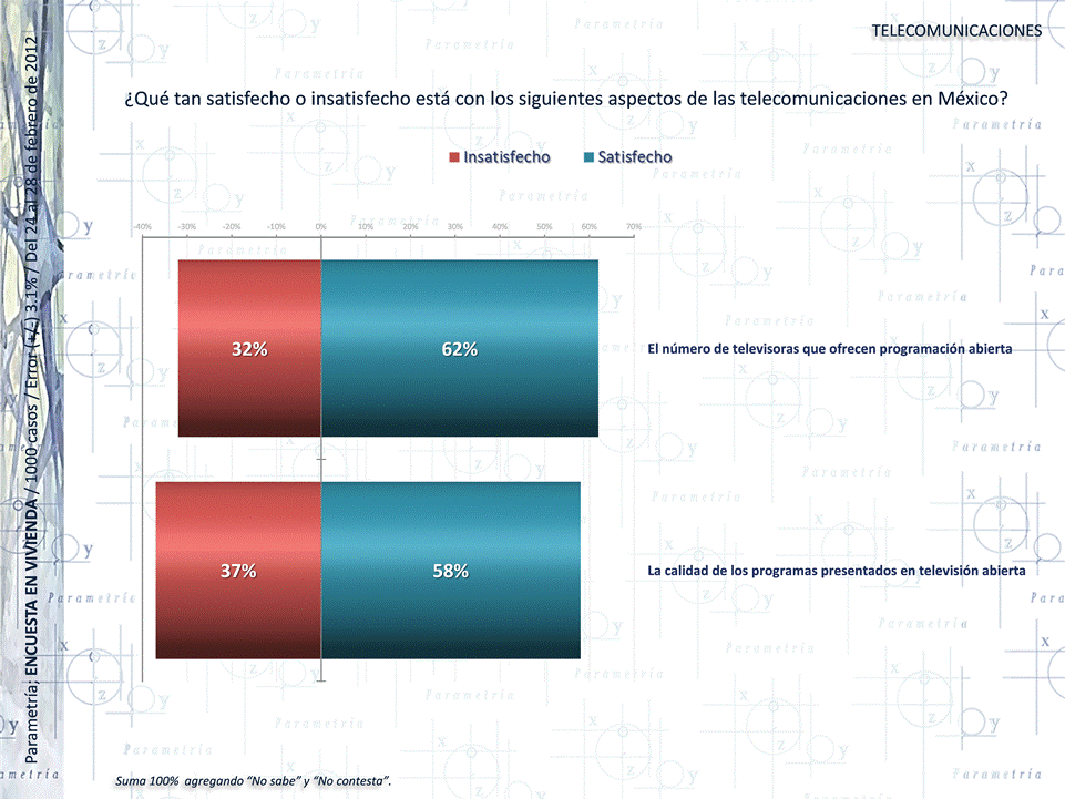La encuesta de Parametría preguntó también por la postura de los mexicanos en algunos rubros del tema de las telecomunicaciones.