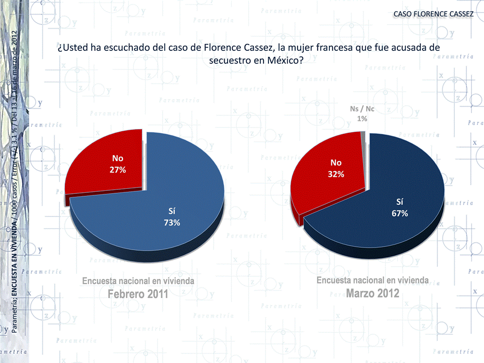 El caso Cassez es conocido por siete de cada diez mexicanos, sin embargo, hay una disminución de seis puntos respecto de la medición realizada en febrero de 2011.