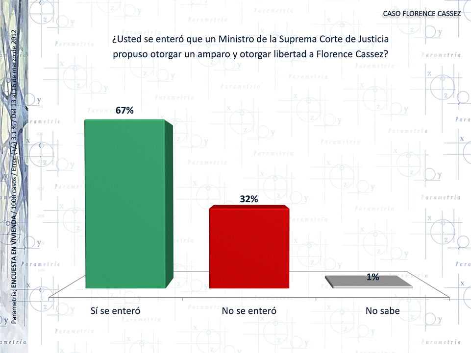 La propuesta del ministro Arturo Zaldívar Lelo de Larrea de otorgar un amparo a Florence Cassez y dejarla en libertad, es conocida por siete de cada diez mexicanos (67%).
