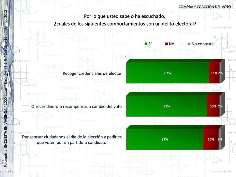 La encuesta también preguntó a los ciudadanos por prácticas de compra y coacción del voto, así como del uso de los programas sociales en tiempos electorales, prácticas que pueden influir en el sentido del voto ciudadano.