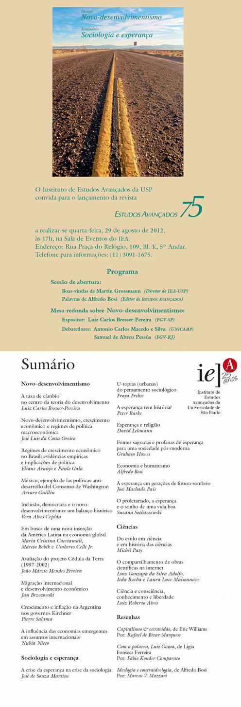 Convite para o lançamento da edição 75 da revista ‘Estudos Avançados’