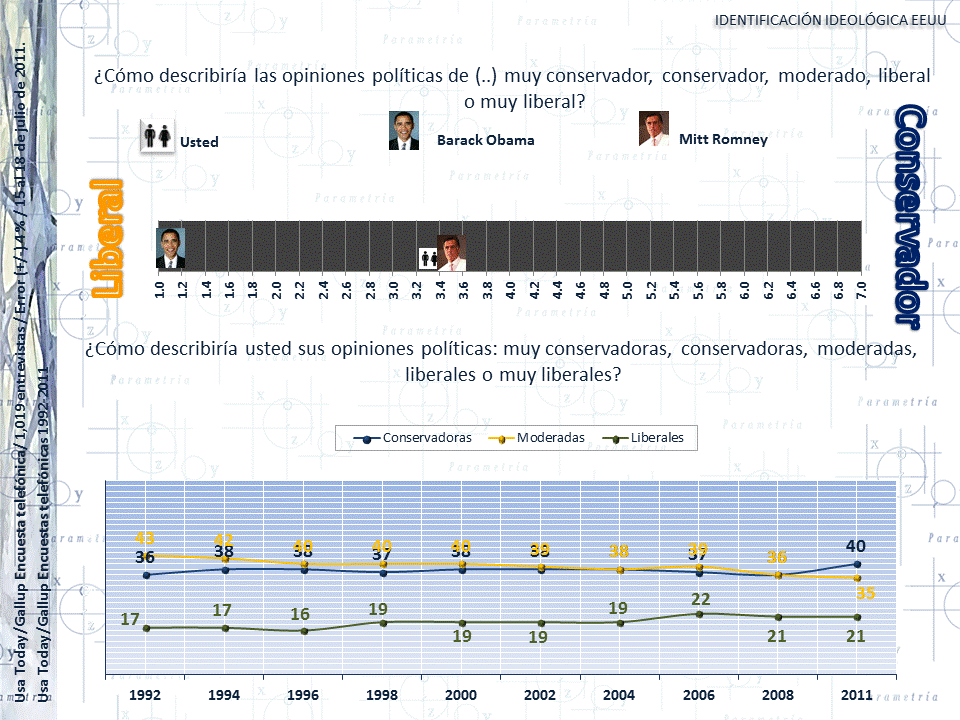 USA TODAY/GALLUP. Encuesta telefónica. Representatividad: Nacional. Número de entrevistas: 1,019, del 15 al 18 de julio de 2011. Nivel de confianza estadística: 95%. Margen de error: (+/-) 4%.