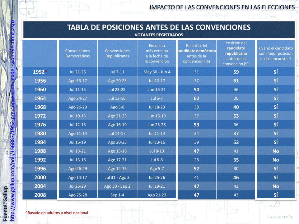 GALLUP “Since 1952, Pre-Convention Leader Has Won 12 of 15 Elections” 27 de agosto de 2012
