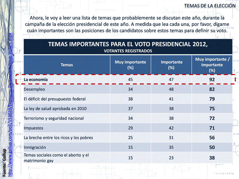 GALLUP “Economy Is Paramount Issue to U.S. Voters” 29 de febrero e 2012