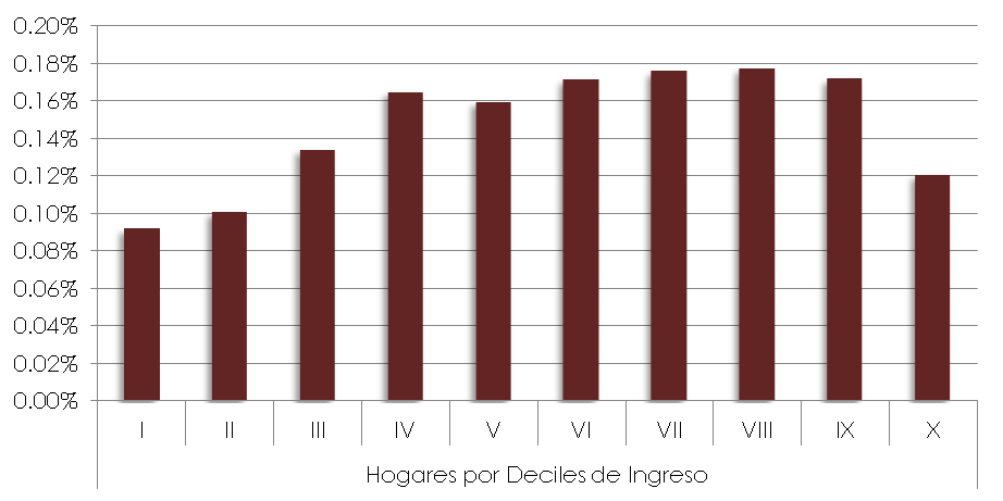 Ahora bien, al analizar la participación de la recaudación por decil poblacional, podría pensarse que nos encontramos ante un impuesto progresivo, donde pagan más los que tienen mayores niveles de ingresos.