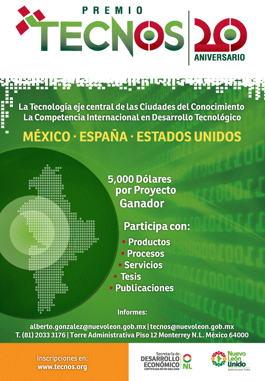 Se invita a participar en el premio TECNOS, que tiene por objetivo reconocer el esfuerzo y logros tangibles de personas o instituciones en la creación de desarrollos tecnológicos que representen un progreso real y medible para la sociedad, en términos de: