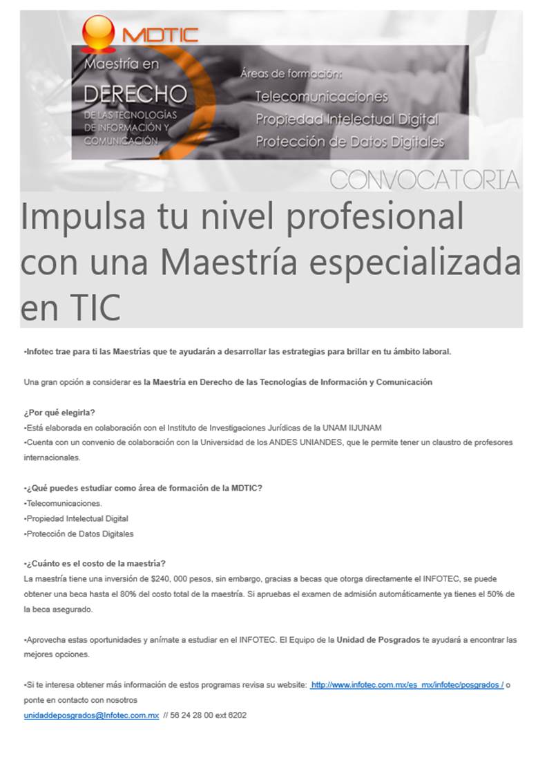 11,825 México, INFOTEC, Maestría en Derecho de las Tecnologías de la Información