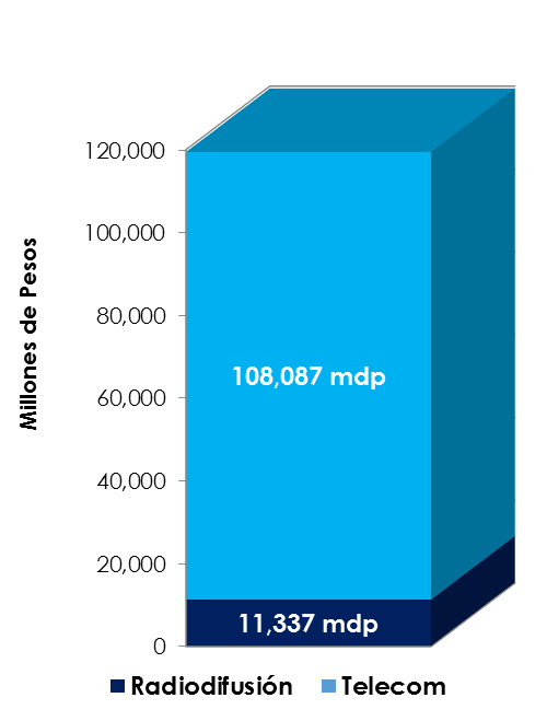 Si analizamos el mercado de radiodifusión podemos observar que contabilizó $11,337 millones de pesos en este mismo periodo. A diferencia del segmento de telecomunicaciones, este mostró un importante crecimiento al incrementar 8.4% respecto al segundo trimestre de 2013, pero representa apenas un décima parte de lo generado por aquel. Las compañías radiodifusoras acreditan este crecimiento principalmente a la mayor demanda de anuncios debido a la transmisión del Mundial de futbol 2014.