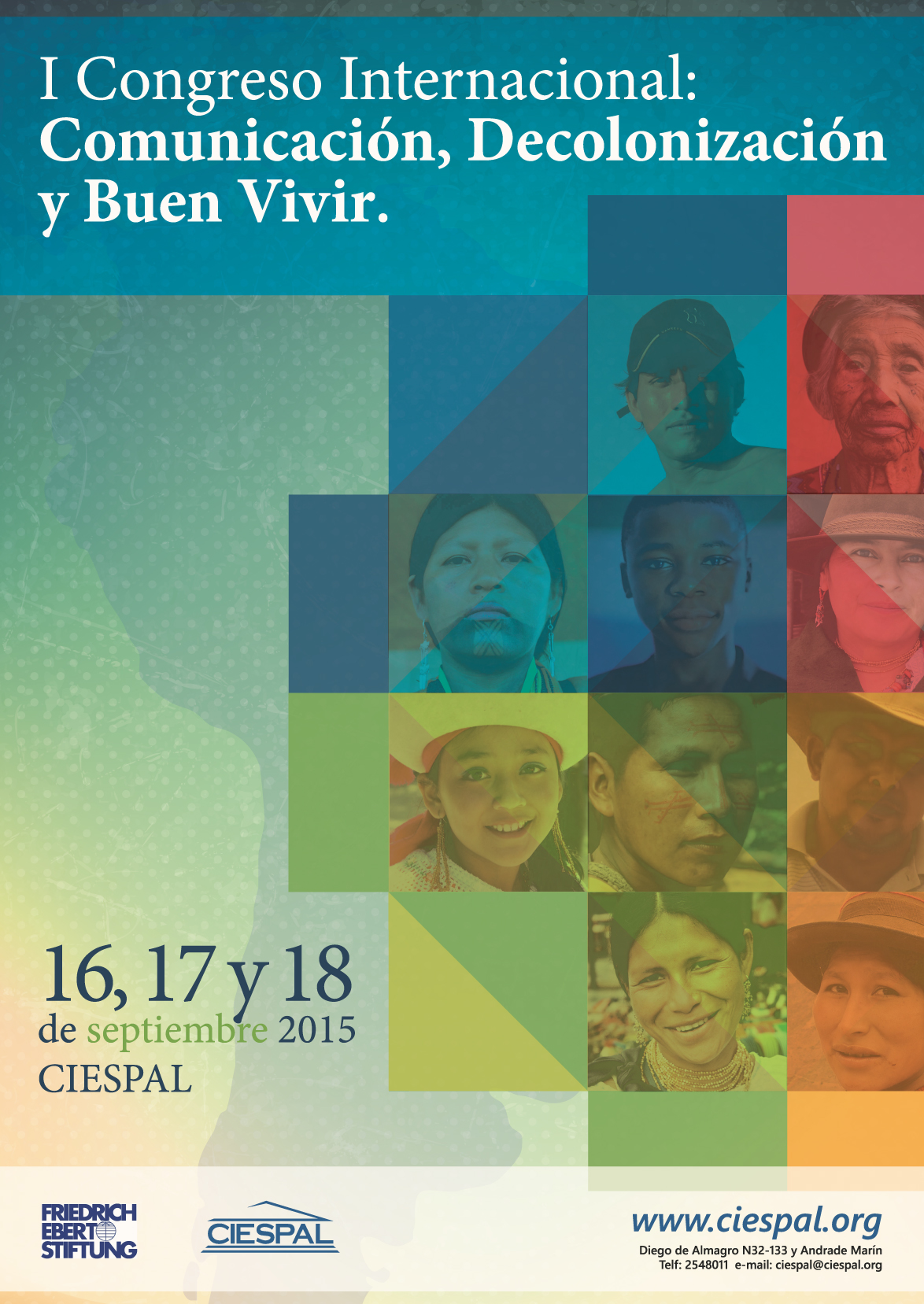El Centro Internacional de Estudios Superiores de Comunicación para América Latina (CIESPAL) y la Friedrich Ebert Stiftung (FES) invitan a toda la comunidad a participar del Congreso Internacional: Comunicación, Decolonización y Buen Vivir, a realizarse los días 16 – 17 – 18 de septiembre de 2015 en Quito, Ecuador, en la sede de CIESPAL.