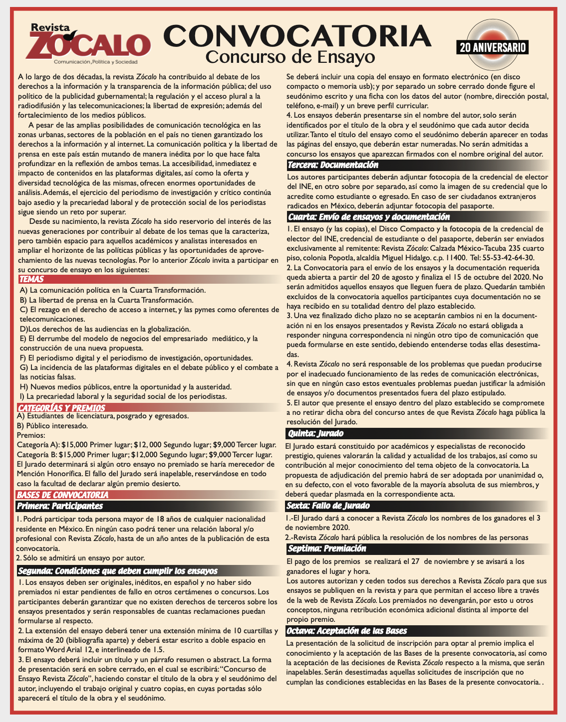 16,676 Revista Zócalo, Convocatoria Concurso de Ensayo