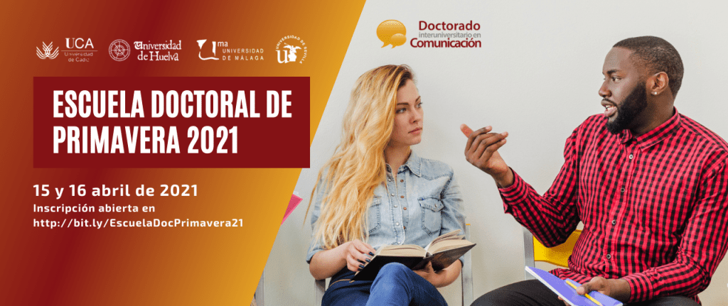 Ya está lanzada la convocatoria de la Escuela Doctoral de Primavera, jornadas del Programa que este curso se celebran online: https://bit.ly/3enJuaT para los días 15 y 16 de abril y que tendremos el placer de contar con vosotros de ponentes y autoridades académicas invitadas.
