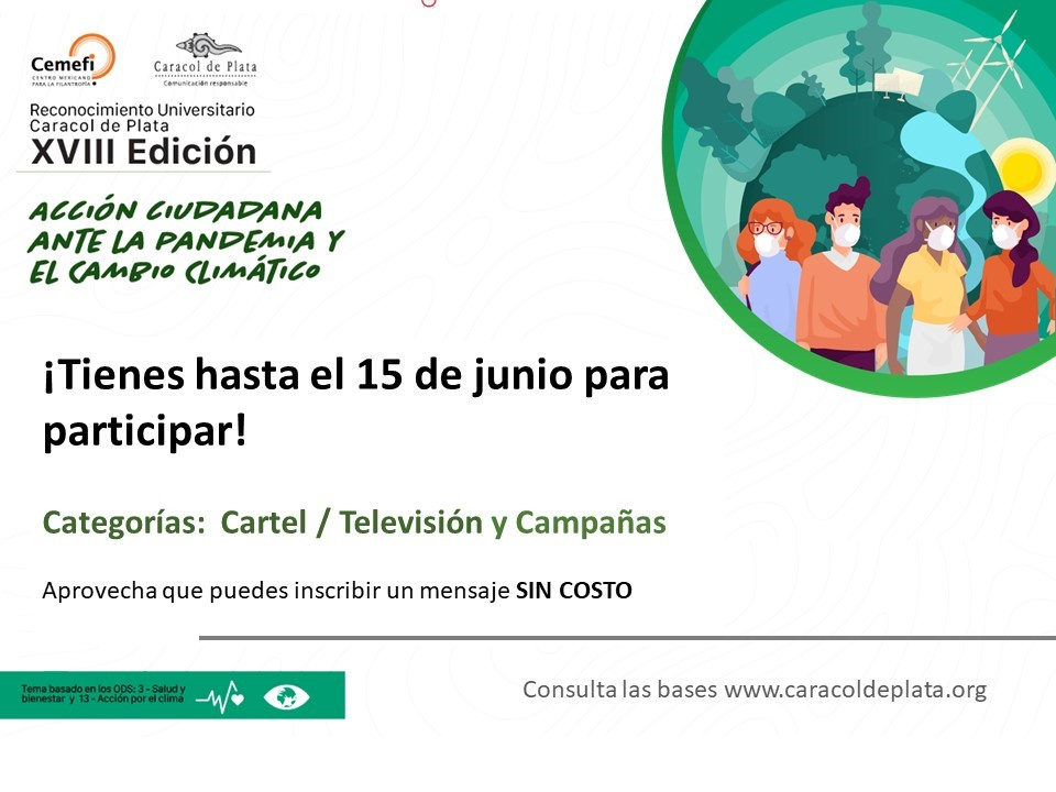 TEMA: «Acción Ciudadana ante la Pandemia y el Cambio Climático»Contamos con 3 categorías: TV / Cartel y Campañas