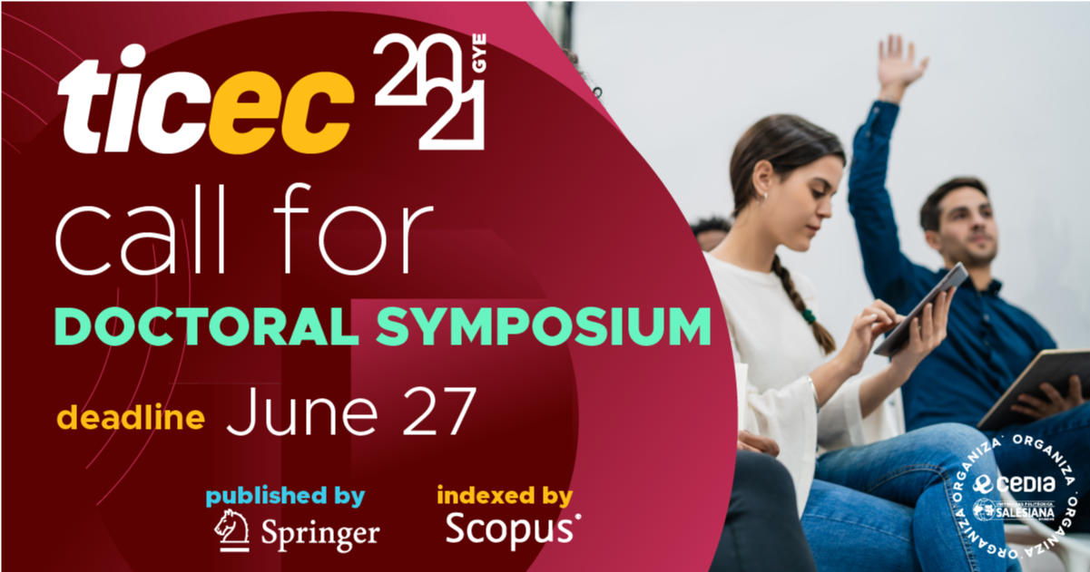 TICEC, crea la primera edición del Simposio Doctoral en Tecnologías de la Información y Comunicación – DSICT 2021. Este evento da la bienvenida a estudiantes y candidatos doctores a presentar los avances de su investigación mediante la presentación y publicación de artículos científicos en este encuentro que reúne a expertos nacionales e internacionales en las áreas de las TIC´s y sus aplicaciones. Mira nuestros ejes temáticos de la conferencia.El doctorando se beneficiará de la retroalimentación y comentarios por parte de nuestro comité científico internacional y de un certificado de participación como expositor en el evento. La publicación de los artículos presentados se realizará en un volumen exclusivo del DSICT 2021 perteneciente a la series Lecture Notes in Electrical Engineering de Springer (indexado por Scopus).