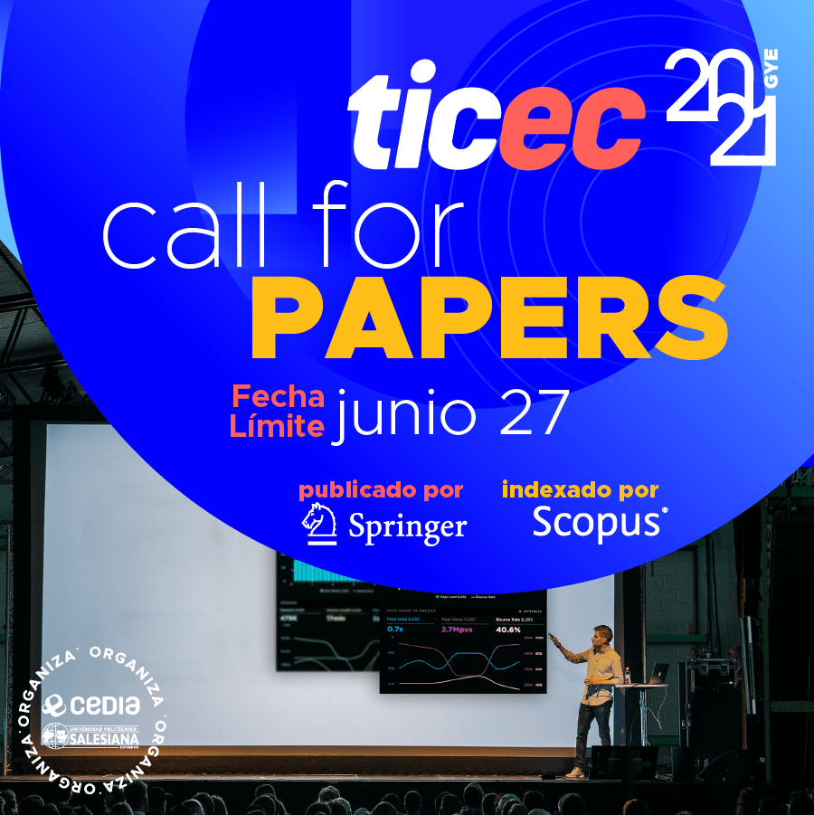 Congreso Internacional TICEC 2021 El congreso que reúne, año a año, a más de 650 investigadores, profesionales y estudiantes relacionados con el área de TI, academia, investigación y emprendedores en general, creando de esta manera un intercambio de conocimiento y tecnología Este evento académico VIRTUAL se desarrollará del 24 al 26 de noviembre de este año. La Universidad Politécnica Salesiana es coorganizador de este evento.