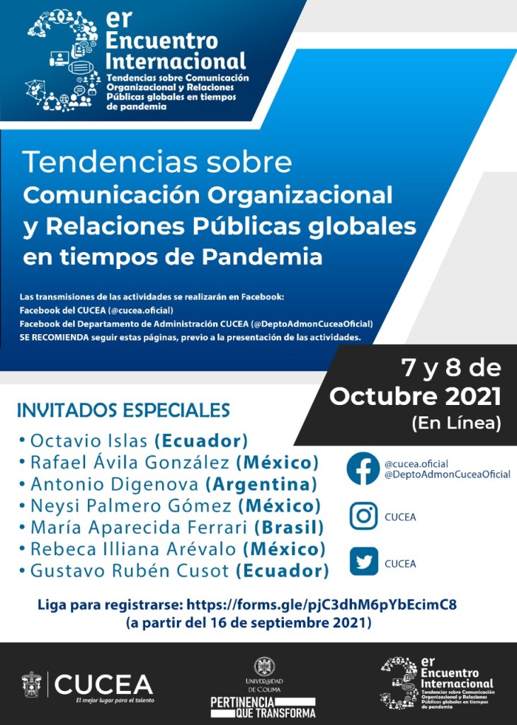 18,337 Universidad de Guadalajara, Universidad de Colima; Tercer Encuentro Internacional sobre Comunicación Organizacional y Relaciones Públicas Globales en Tiempos de Pandemia