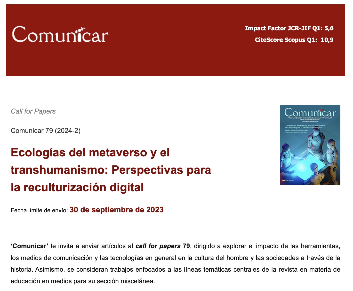 Fecha límite de envío: 30 de septiembre de 2023