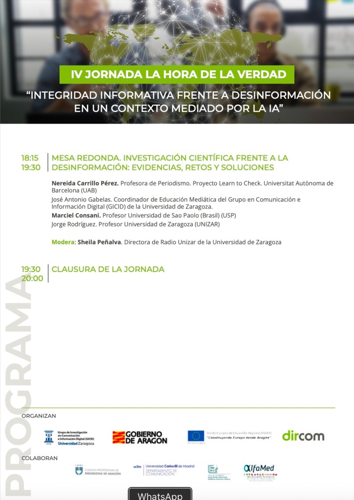 19,153 Universidad de Zaragoza, IV Jornada La hora de la Verdad